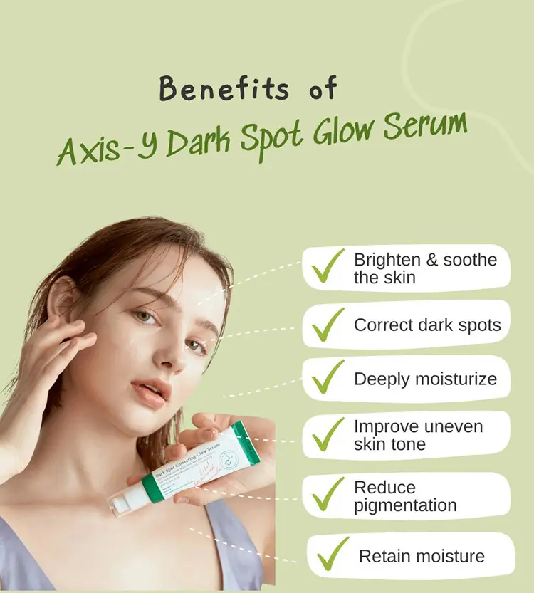AXIS-Y Dark Spot Correcting Glow Serum একটি উচ্চমানের কোরিয়ান স্কিনকেয়ার সিরাম, যা ত্বকের কালো দাগ, ব্রণের দাগ ও হাইপারপিগমেন্টেশন দূর করতে সহায়তা করে।