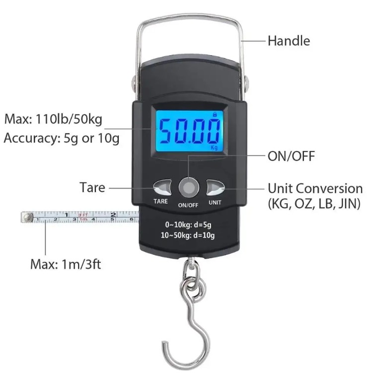 সর্বনিম্ন ১০ গ্রাম হতে ৫০ কেজি পর্যন্ত ওজন মাপা যায়।